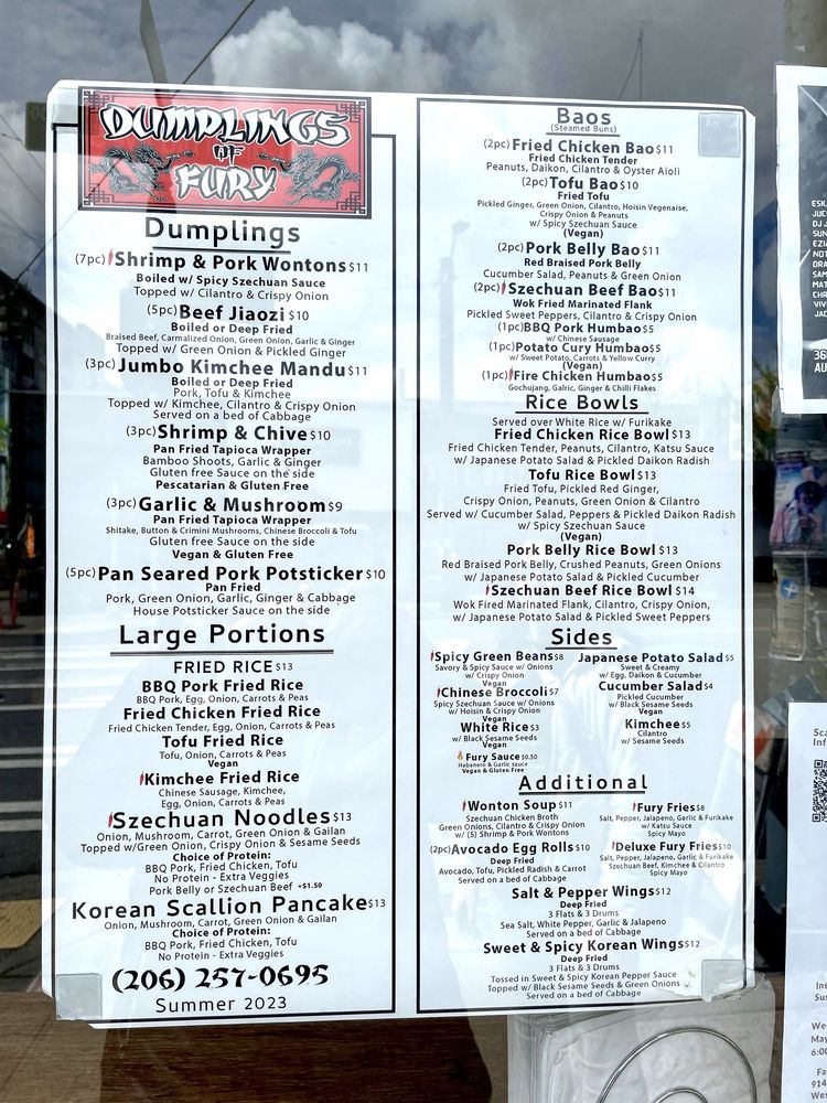 Introducing the menu at Dumplings of Fury, a gem nestled in West Seattle, promises a delightful culinary adventure. This casual eatery shines with its diverse offerings, including a robust selection of dumplings, from the classic steamed jiaozi to the boldly flavored braised beef rib variety. Customers rave about the exceptional quality and fresh ingredients that elevate every dish.
